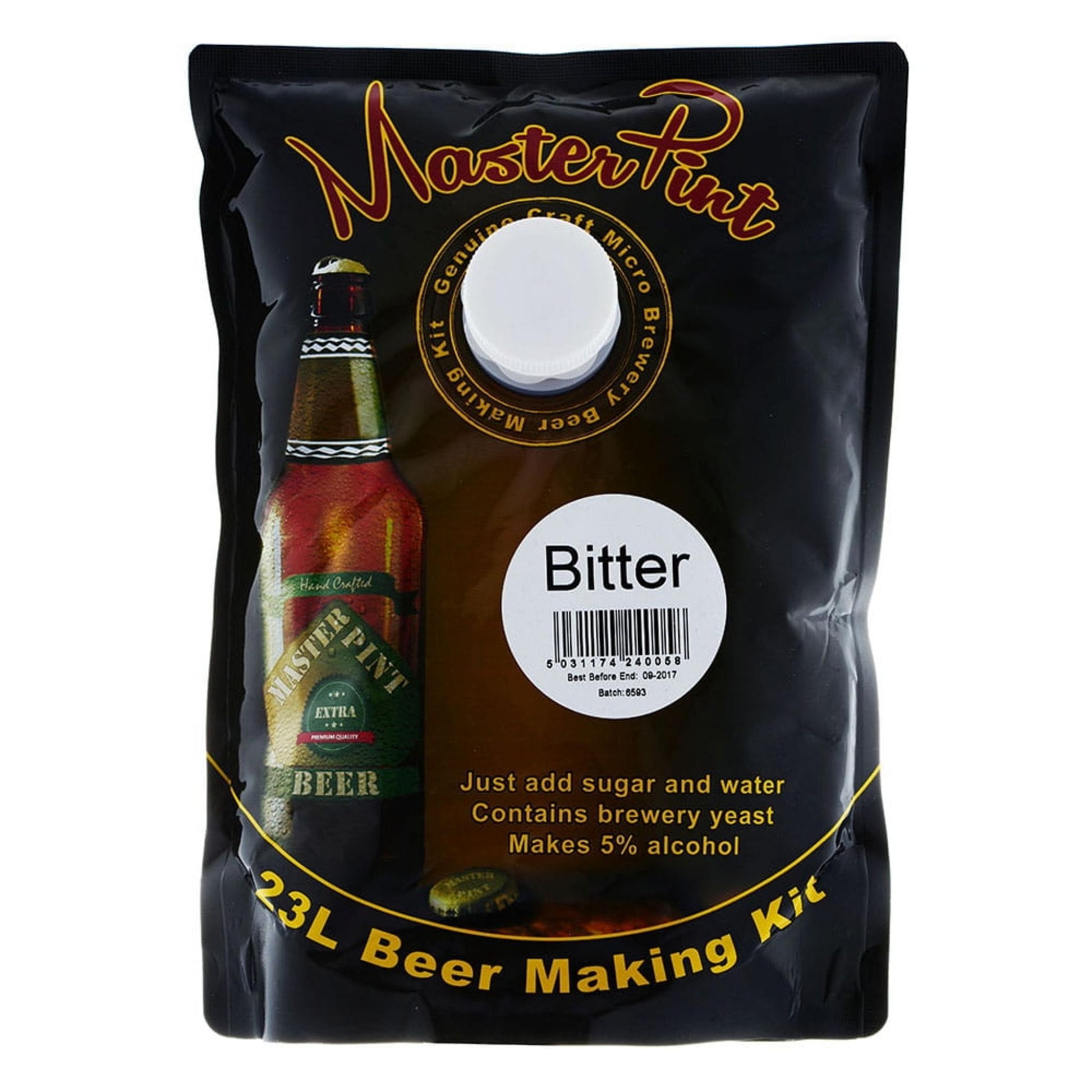 All MasterPint kits make 23 litres of beer and just require sugar and water.